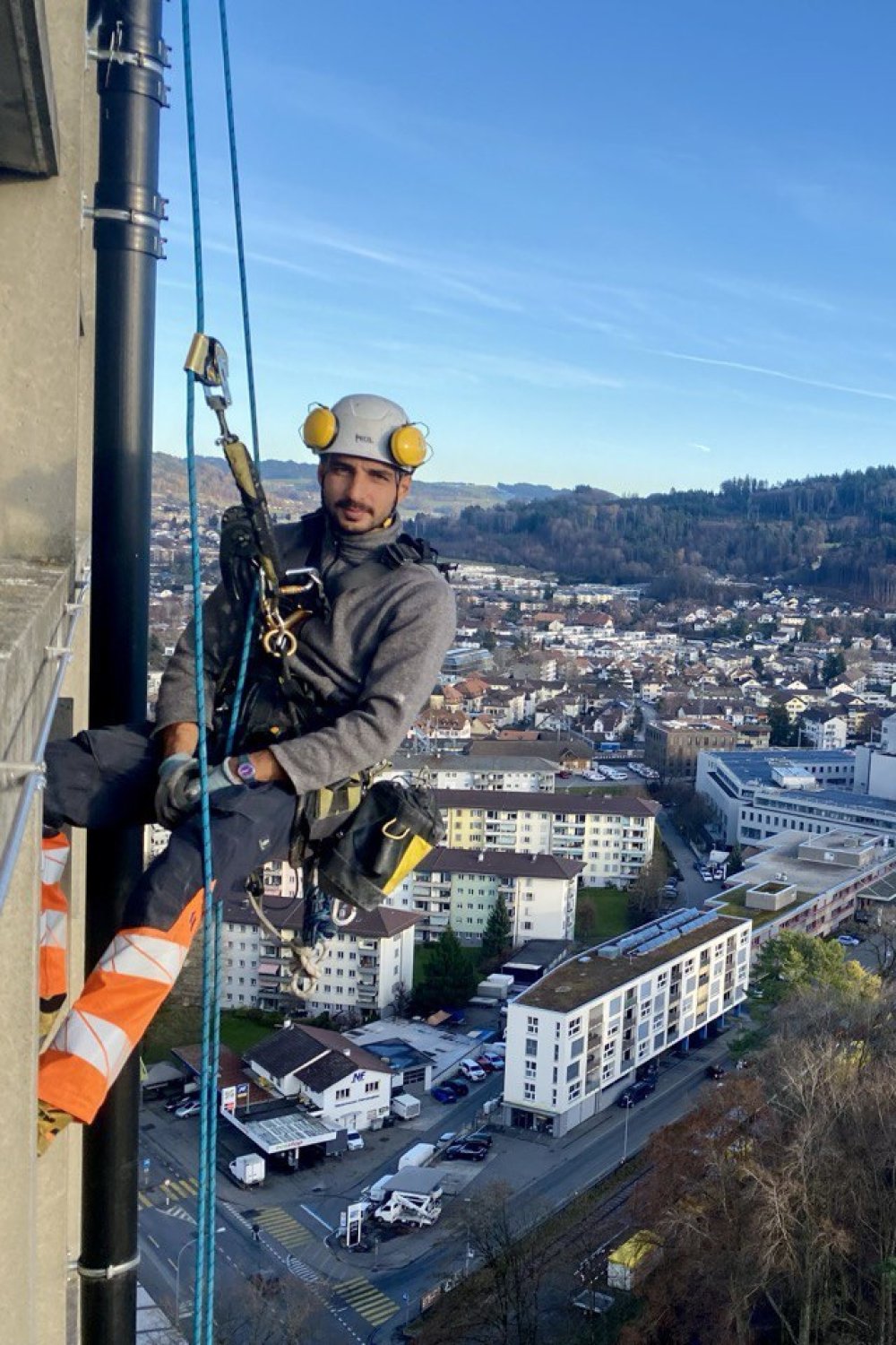 Röschu bringt nichts aus der Ruhe. Als Supervisor nimmt er sich anspruchsvollen Projekten an, ist Vorbild und Respektsperson für die Jungen Wilden und Experte für Absturzsicherungen. Seine beachtlich Erfahrung am Seil gibt er in unserem SPRAT-Kursen an zukünftige Industriekletterer weiter. Auch per Gleitschirm geht's für ihn am liebsten hoch hinaus.